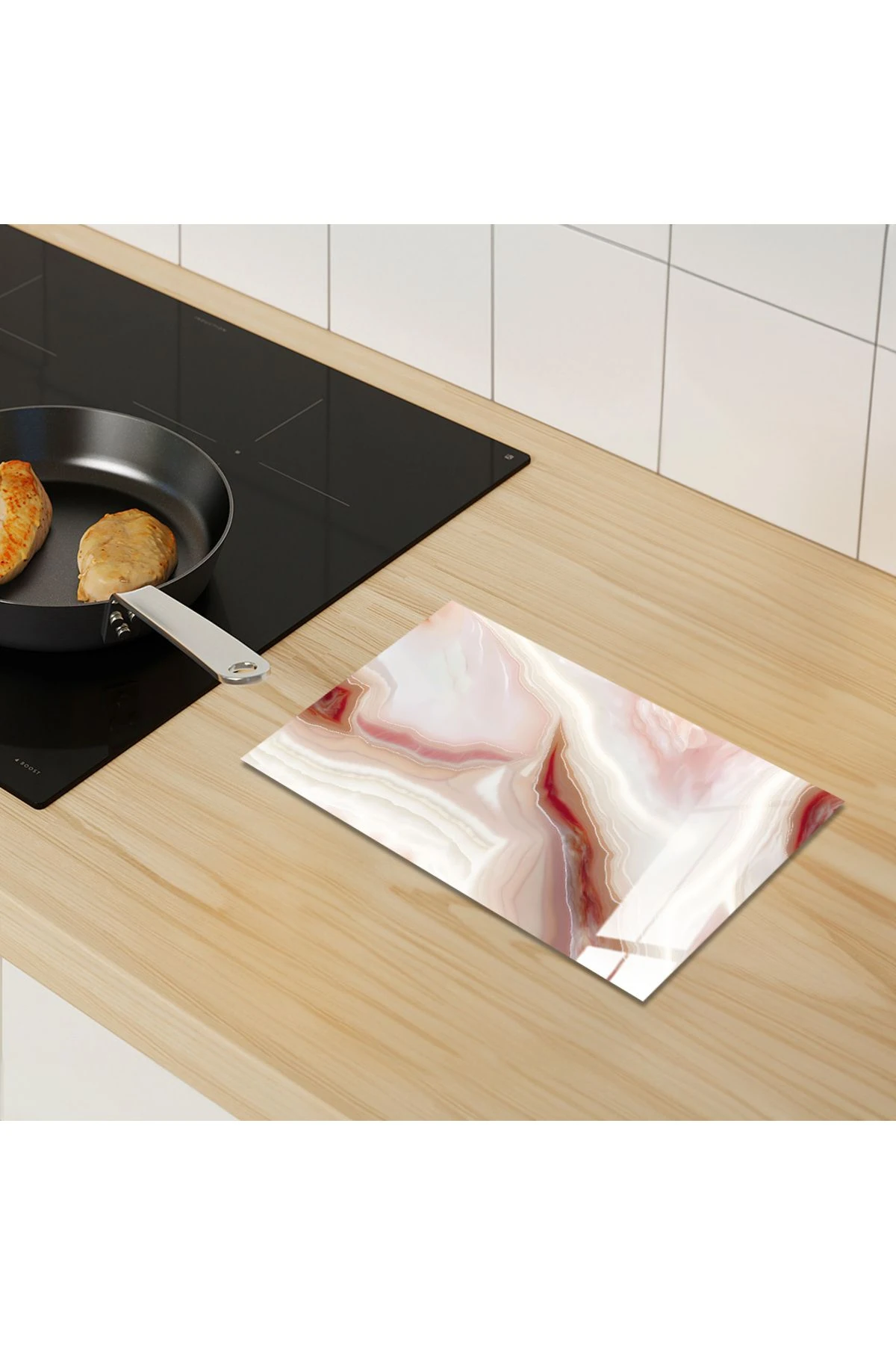 Cam Kesme Tahtası Pembe Tonlu Mermer Desenli