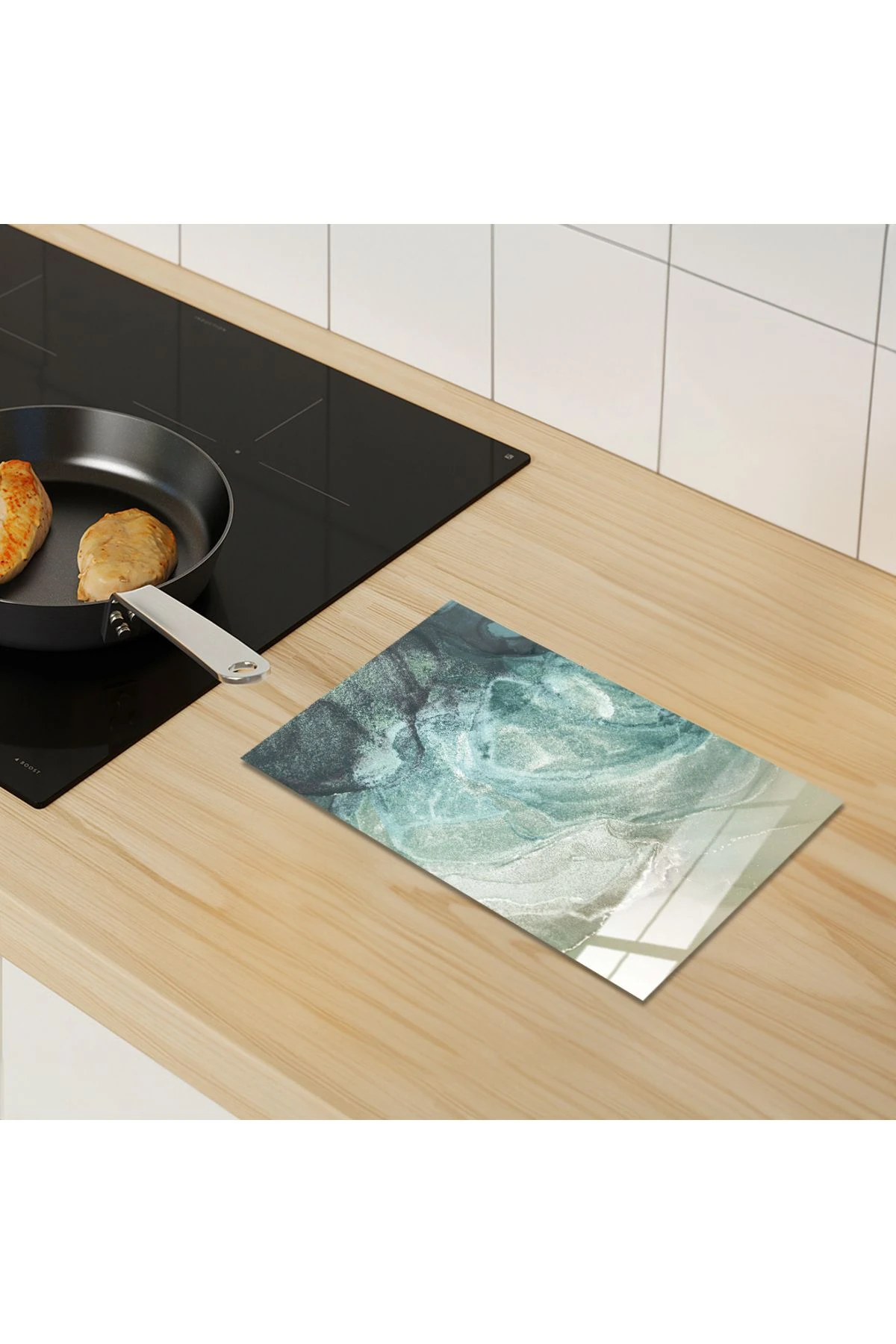 Cam Kesme Tahtası Su Yeşili Tonlu Mermer Desenli