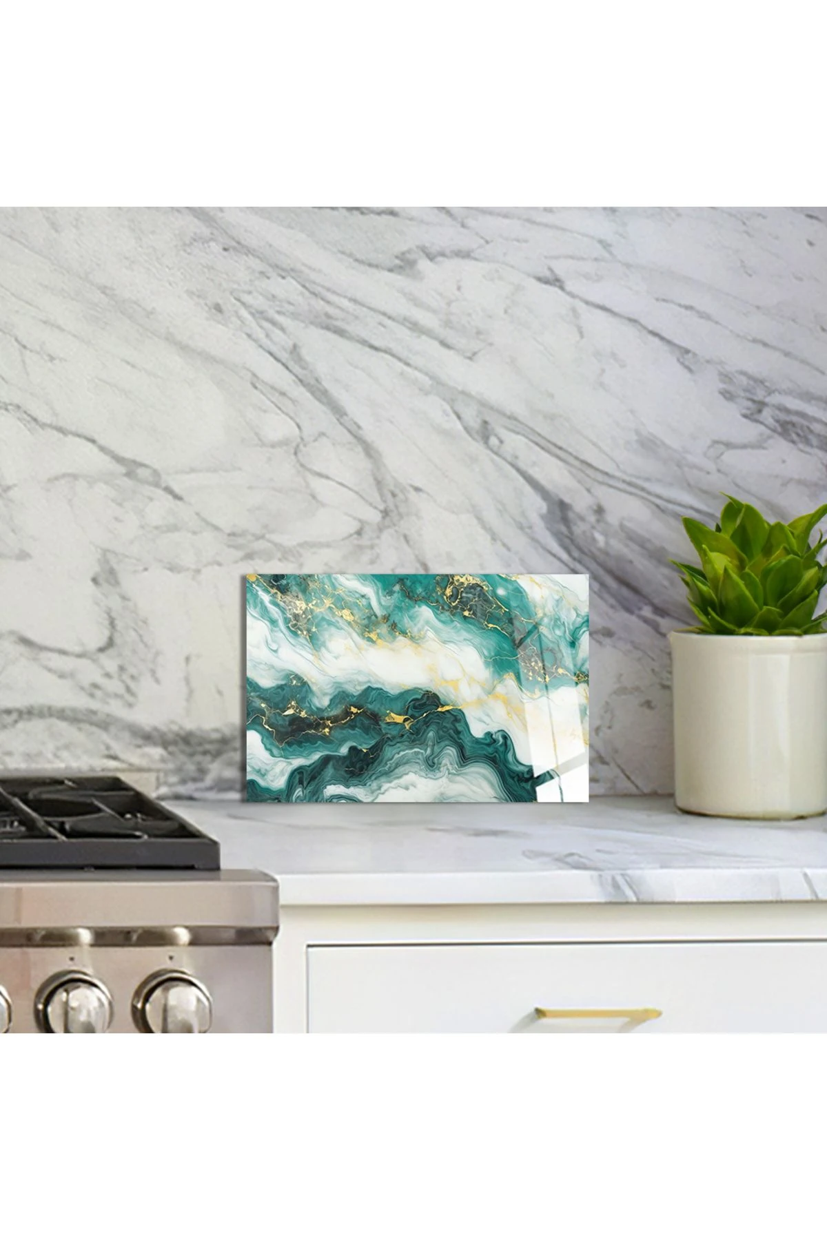 Cam Kesme Tahtası Su Yeşili ve Beyaz Mermer Desenli