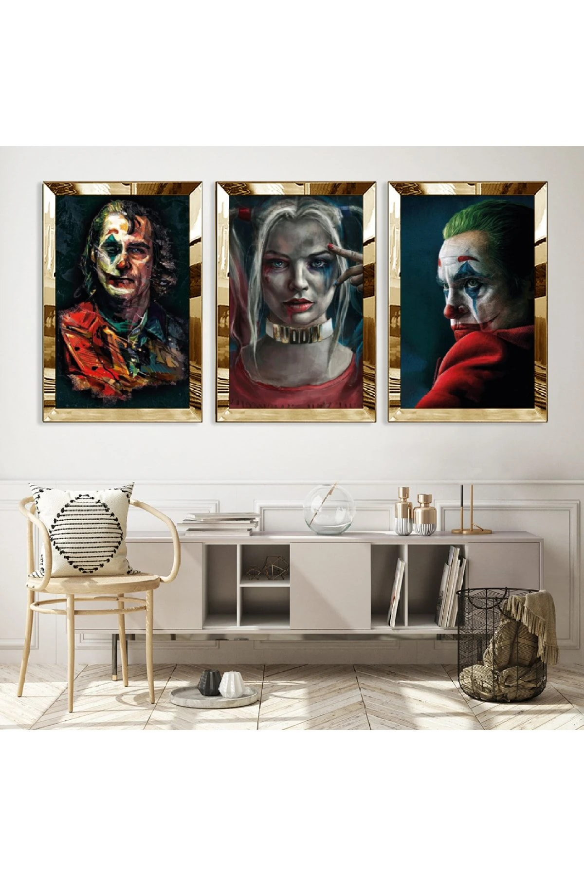 Gold Aynalı Pleksi Çerçeveli Joker Karakter Üçlü Mdf Tablo Seti