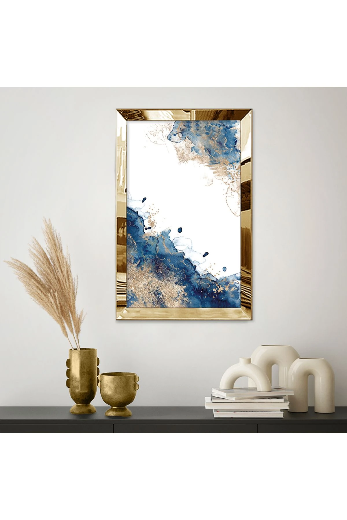 Gold Aynalı Pleksi Çerçeveli Mavi Arka Planlı Soyut Tasarım Mdf Tablo