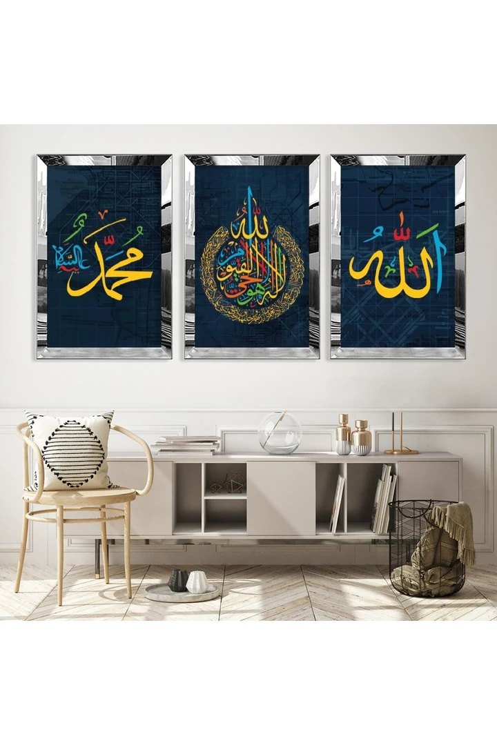 İslami Duvar Tabloları Hz Muhammed Ve Allah Lafzı Dini Gold Pleksili Saat Ve MDF Tablo