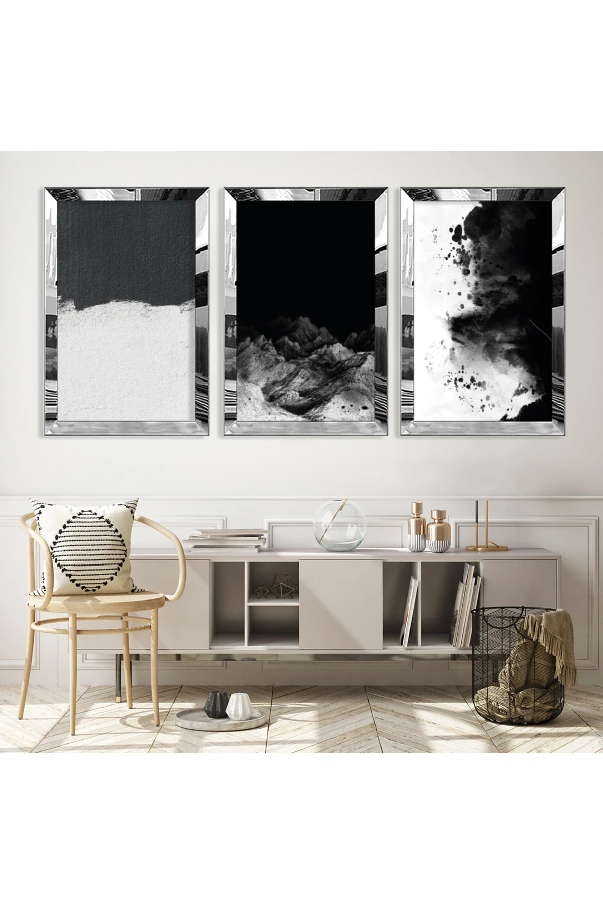 Siyah Beyaz Modern Gold Pleksi Kenar 3'Lü Solmaz MDF Tablo Seti