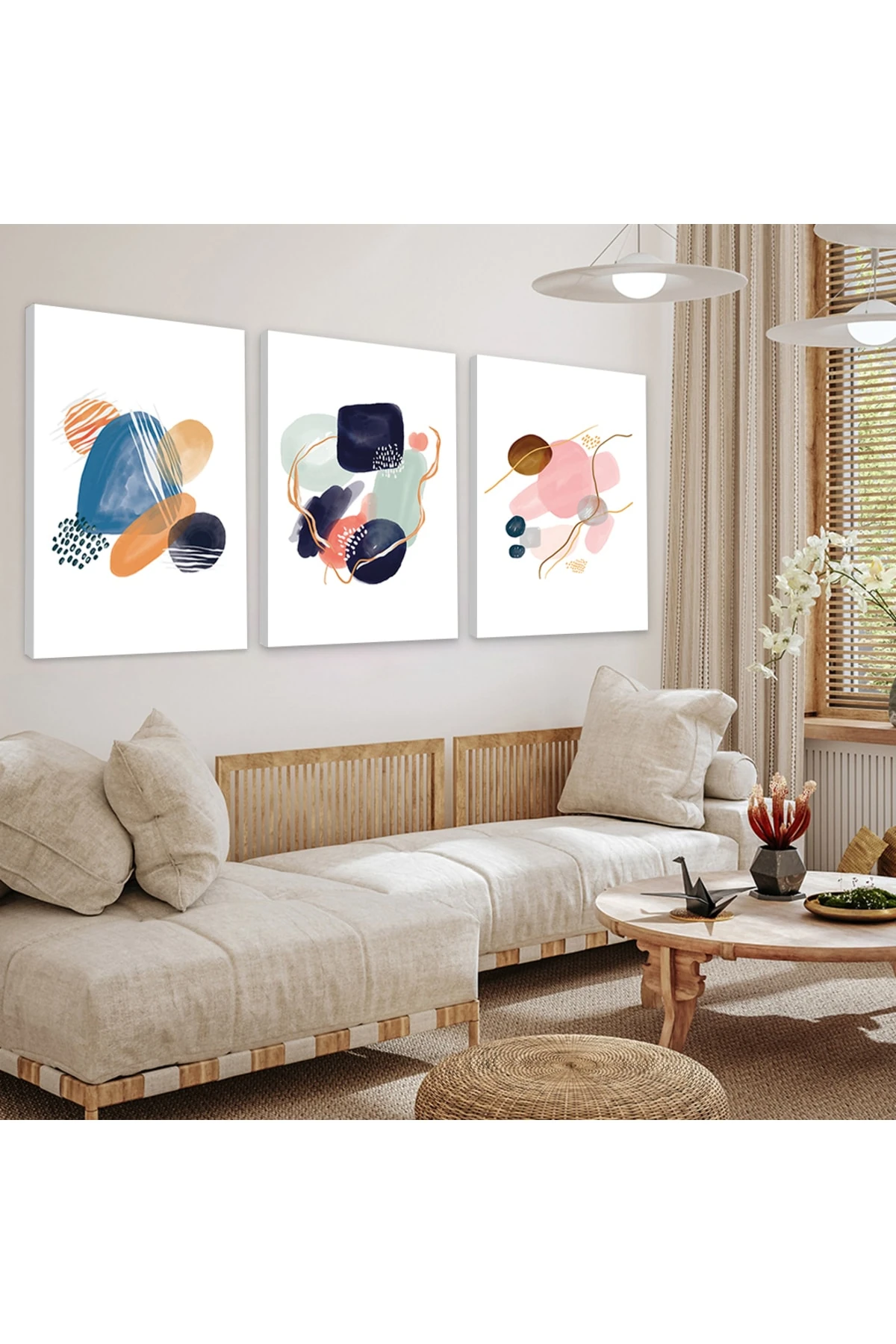 Soyut Desen Kum 3'Lü Ahşap Şase Dijital Baskı Kanvas Tablo