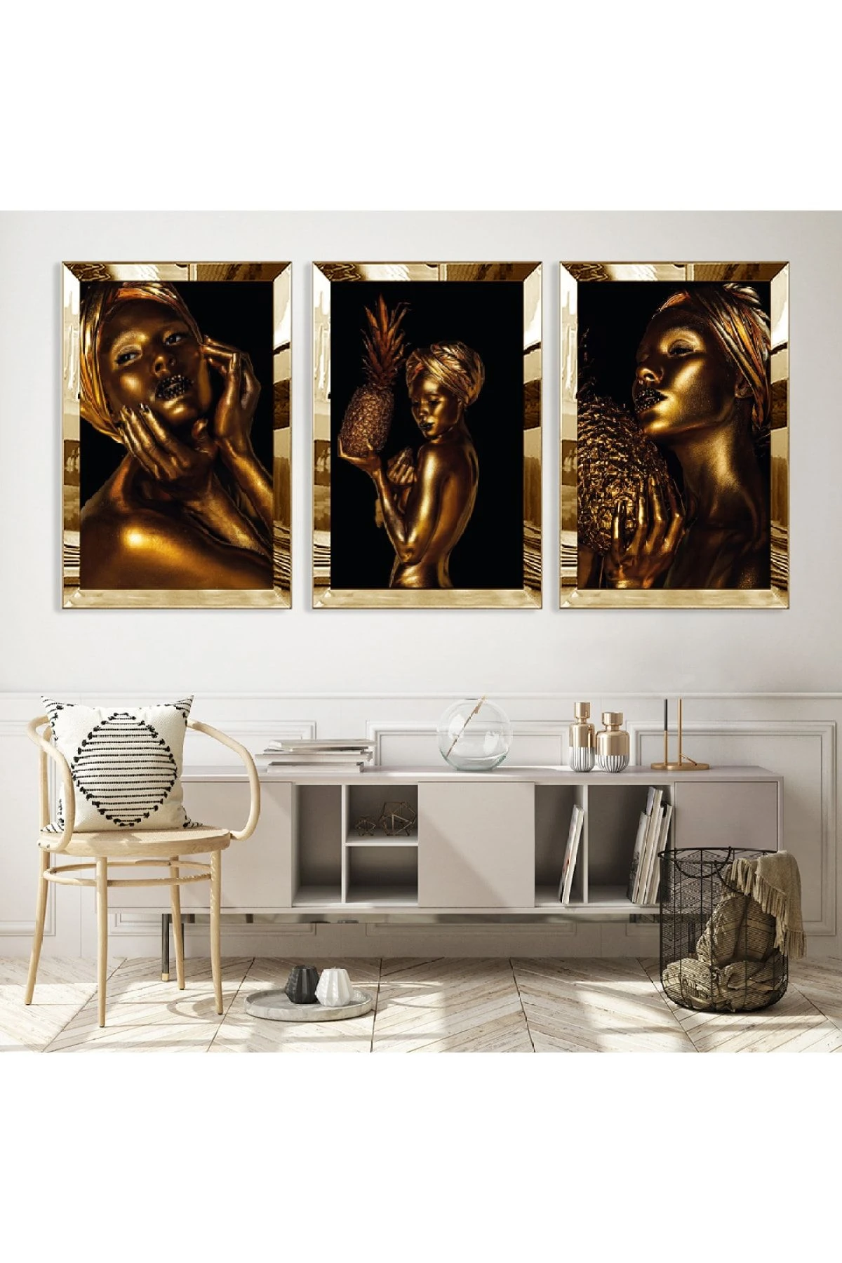 Soyut Desen Şekiller Gold Pleksi Kenar Üçlü Mdf Tablo Seti