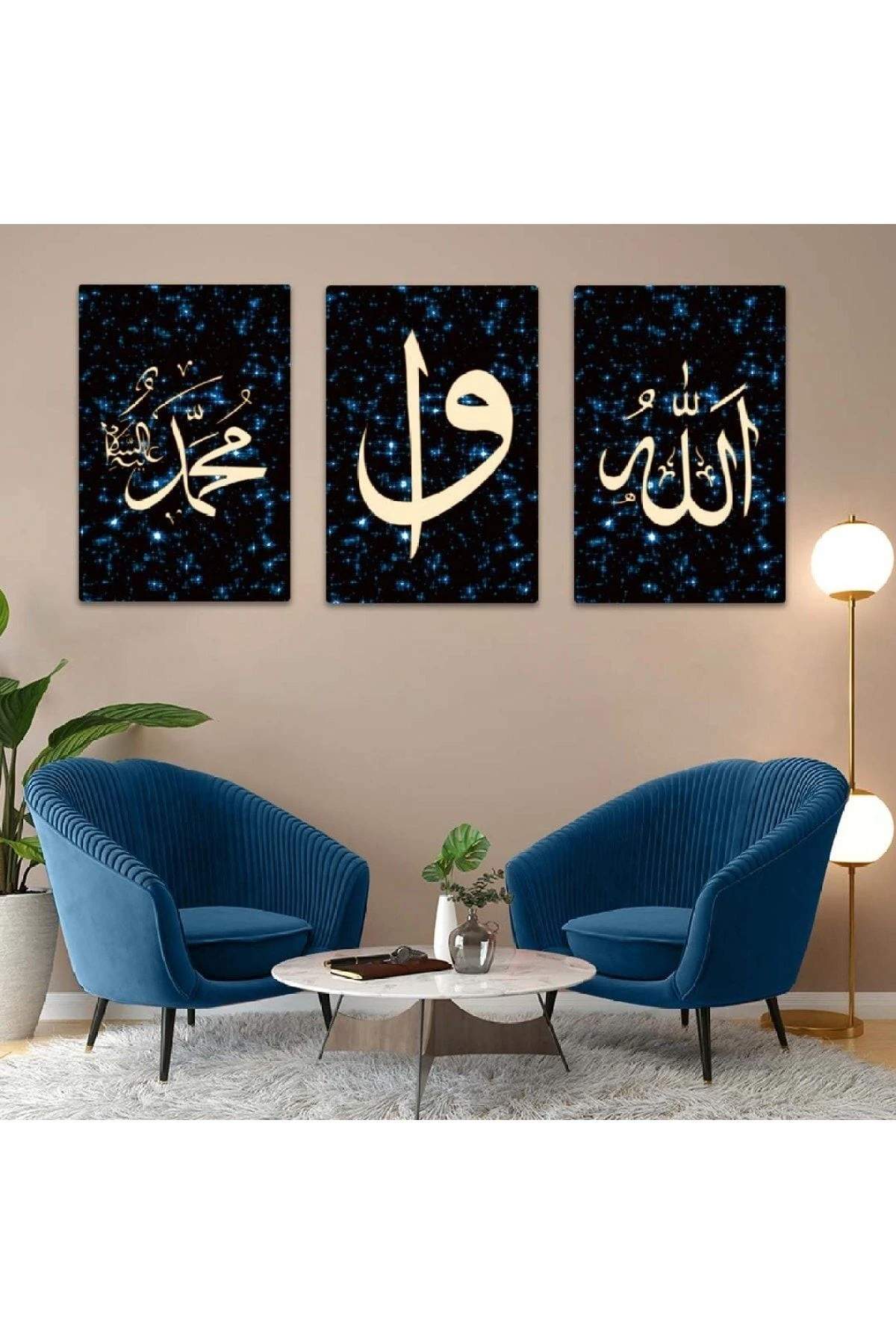 Üçlü Mdf Hz Muhammed Ve Allah Lafzı Dini Tablo Seti