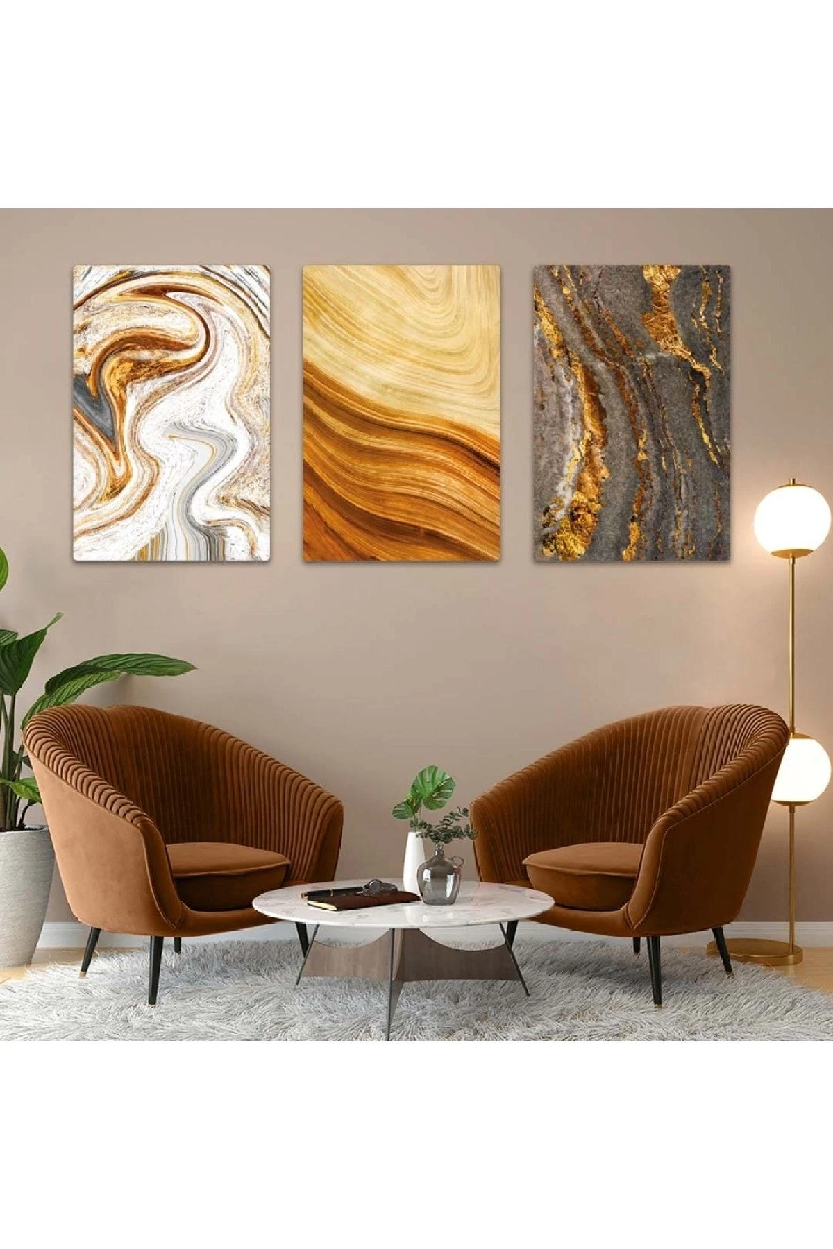 Üçlü Mdf Sarı Renk Modern Tablo Seti